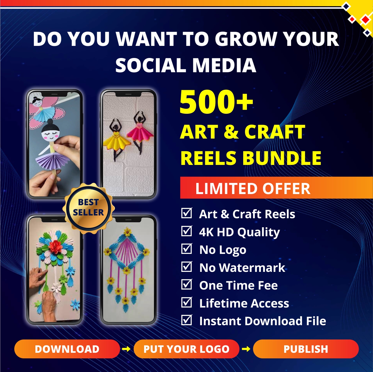 GET 9000+ ART AND CRAFT REELS BUNDLE FOR CONTENT CREATORS, STUDENTS, INFLUENCERS, BUSINESS OWNERS. DOWNLOAD PUT YOUR LOGO AND PUBLISH.
